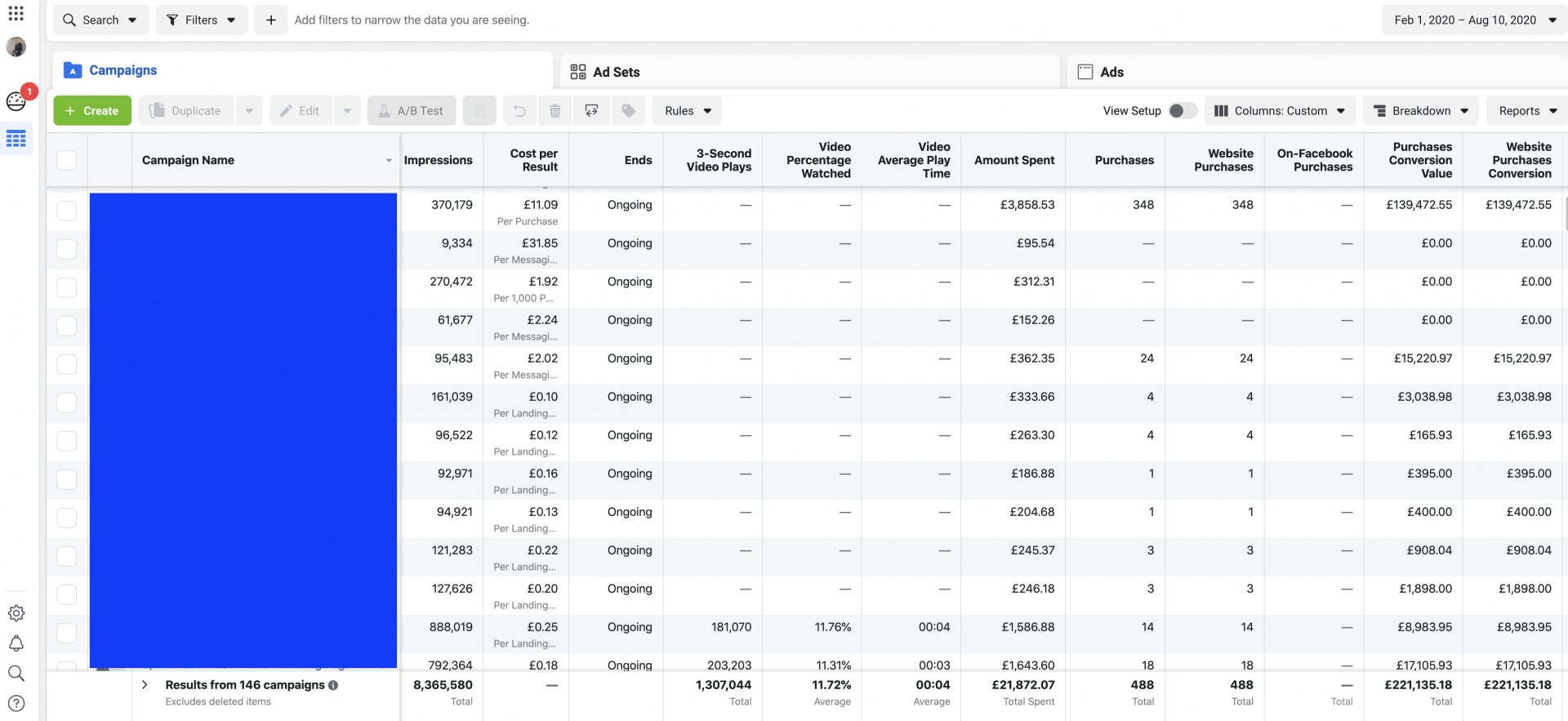 Advertising Spend £14,158 Online Sales Generated £236,098 from Facebook and Instagram advertising campaigns. Increased in-store traffic across 5 stores, brand awareness and 893,651 3 second video views.